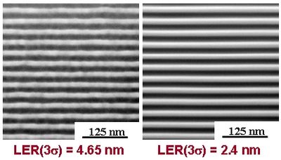 | A comparison between PMMA (left) and di-block copolymer technology |