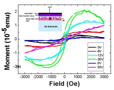 | The transition of MnGe from Ferro to Parra via electric field influence. |