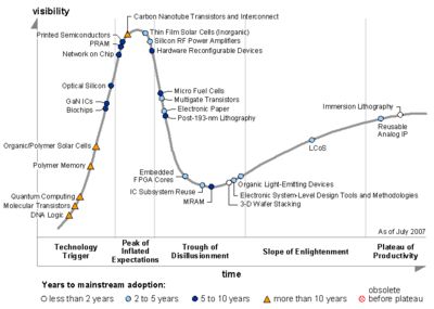 | Garner Semiconductor Hype Cycle showing CNT technologies on top. |