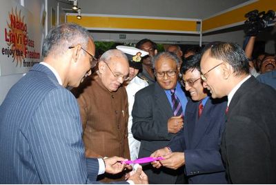 This incident put my thoughts back to remembering what we had done in the Bangalore Nano Show recently….Our Demo also left many amazed in the First ever Nanotechnology EXPO in India (December 2007). Image below shows a stretchable Fabric with hydrophobicity effect (due to Nano surface coating) on display to Governor of Karnataka, Prof CNR Rao, and Secretary for IT/BT/Nano government of Karnataka.
