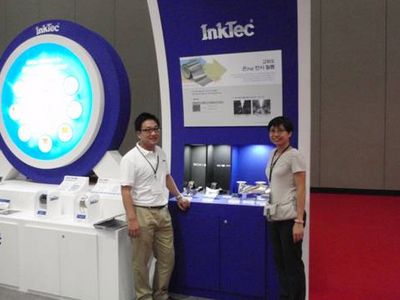 | Dr. Lerwen Liu visiting an exhibitor, Inktec |
