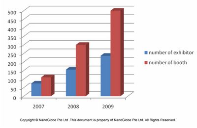 | Table 1. Comparision Table for the exhibitors and booths of PV Taiwan 2007, 2008 and 2009 exhibitions. (Source: NanoGlobe Pte. Ltd.) |