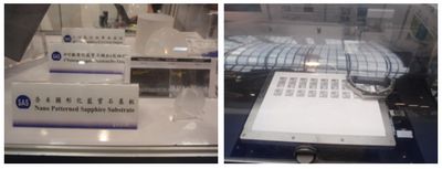 Along with this exhibition, the 4th PV Taiwan Forum was held on October 7-8 in TICC (Taipei International Convention Centre). This Forum invited 18 experts from the PV industries, government bodies, academic and research institutions to share their insights on the latest trends and updates in the PV industry through discussions on 4 topics: "Global PV Industry and the Market", "Polysilicon and New Materials", "New PV Applications and Technologies" and "Thin-film PV Technologies". Guest speakers are from Bureau of Energy, Solarbuzz, Morgan Stanley, MEMC, Elkem, LDK, Sino-American Silicon, DuPont, G24 Innovations, FUJIFILM Dimatix, Wuerth Solar, Applied Solar, ULAV, Oerlikon and others. Although no DSSC and OPV products are displayed in the PV Taiwan 2009 exhibition, development and applications of DSSC and OPV technologies are discussed in the "New PV Applications and Technologies" session. Last but not the least, nanotechnology has being incorporated into the new types of thin film solar cells for improving the performance and simplifying the manufacturing process. Nanotechnology-related products showing up in this exhibition include the SAS' nano-patterned sapphire substrate for improving LED's efficiency and FUJIFILM's inkjet printheads for nanoink printing (see Fig. 2).