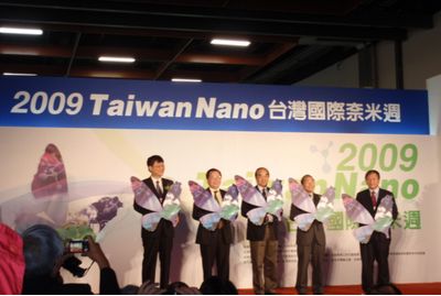 Taiwan Nano 2009 held in October 7 - 9, 2009 (see Fig.1) at the Taipei World Trade Center attracts 64 companies and agencies occupying 114 booths to present Taiwan nanotech R&D and commercialization, and education. This is the 7th annual Taiwan Nano 200X, and it hosts International Exhibition, APEC Nanoproduct Measurement Forum, Asian Symposium Nanoimprint Lithography, and 2009 Global Regulation of Bionanotechnology Industry Conference. This main event organizer is the Office of National Nanoscience and Nanotechnology Program. The Taiwan National Science and Technology Program for Nanoscience and Nanotechnology was initiated in 2003 and aims to achieve academic excellence in basic research and accelerate nanotechnology commercialization. The program has entered Phase II this year. Other organizers of Taiwan Nano 2009 include: Industrial Technology Research Institute (ITRI), Academia Sinica, Medical and Pharmaceutical Industry Technology and Development Center, Taipei Computer Association (TCA), and Taiwan Nanotechnology Industry Development Association (TANIDA). Taiwan Nano 2009 Exhibition consists of 4 exhibitive sections: nanomark theme hall, national program theme hall, nano imprint lithography hall and nanotech industry area.