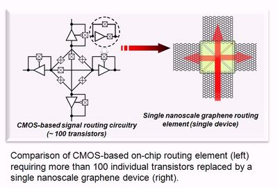 To put it bluntly, it looks as if a new nanoelectronic switch will be needed. Considering the tremendous cost required to retool an entire industry for such a fundamental technology change, a new switch cannot simply be 30% or 50% faster than - or consume half the power of - a Si FET. Its system performance and extendibility must be measured in orders of magnitude. It is hardly a surprise, then, that nanotechnology is providing some of the most provocative solutions to address this challenge. The core of these solutions - being pursued by many of the world's leading university/industry/government research consortia, such as CNSE's Institute for Nanoelectronics Discovery and Exploration (INDEX) - is to exploit nanotechnology to replace multiple CMOS switches with a single nanoscale logic element, i.e. a multi-function nanoscale gate. Perhaps the best example is the use of a single atomic monolayer of carbon - graphene - not as a semiconductor, but as an electron waveguide which can focus and direct electrons much like photons are directed in optical fibers and lenses. The so-called Veselago lens effect (described in 2007 by Cheianov and coworkers) in graphene has the potential to combine devices and interconnects in the same atomic monolayer constituting an ultra-low power field-programmable gate array (FPGA). In this scenario, a single graphene focusing switch + interconnect could replace as many as 200 conventional transistors. Researchers at CNSE's INDEX Center are at the forefront of this critical development.