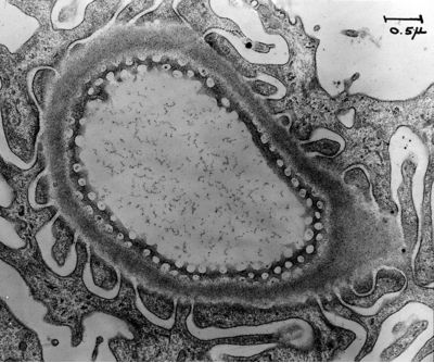| Farquhar, Marilyn G. - Kidney Rat glomerular filtration barrier tangential section fenestrated endothelium |