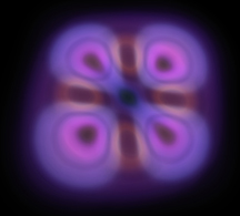 | This is an image of a quantum dot produced by a simulation using the nanoHUB, a Web site created by the Purdue-based Network for Computational Nanotechnology that is used by more than 3,000 national and international researchers and educators every month. Research simulations on carbon nanotubes, nanotransistors, nanoelectronics and quantum dots currently are among the most popular on the nanoHUB. This image shows the computed second excited electron state of a quantum dot nanodevice in which electrons resonate and emit pure bright light. Quantum dots are the basis of the new, energy-efficient, long-lasting, ultrabright light-emitting diodes (LEDs) that are becoming widely used in highway traffic signals. (Image by Wei Qiao, David Ebert, Makerk Korkusinski, Gerhard Klimeck ) |