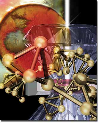 | The production of amorphous red phosphorus was first reported by A. Vogel in 1813. Now pressure-dependent 3D atomic structure models have been constructed to be consistent with neutron and X-ray diffraction diamond anvil cell data. Image by Scott Dougherty/LLNL. |