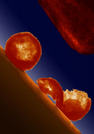 Minor refers to one video in which the graph of applied pressure drops suddenly when the compressed nanosphere squirts out from between the substrate and the punch like a watermelon seed. "If you didn't see that happening, you'd have no way of knowing why the force suddenly vanished," he says. "So while setting up the experiment in the In Situ Microscope is a little more difficult and time-consuming, it's essential."