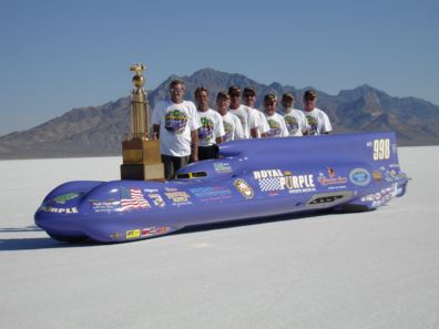 According to Nish Motor Sports, "Nish Motorsports and the Royal Purple Streamliner were awarded the legendary "Hot Rod Magazine Top Speed Award", for the third time, at the SCTA/BNI sanctioned Speedweek event at the Bonneville Salt Flats held August 18th thru the 24th, 2008 http://nishmotorsports.com/speedweek2008.html . Nish Motorsports driver Mike Nish made one run of 371.080 miles per hour and had an exit speed of 377.102 miles per hour."