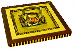 | The magnetic nanotag-based protein assay chip has a 200 microliter reaction well and is supported by an 84-pin ceramic base. Embedded in the bottom of the reaction well are 64 sensors in an 8-by-8 array. Credit: Osterfeld et al., PNAS. |