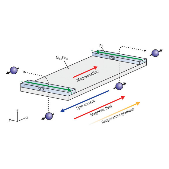 The discovery of the spin Seebeck effect is enabled by the so-called spin Hall effect. Through interactions between the spin current and the atoms in a metal, electrons of different spin orientations get scattered to opposite ends of the metal, creating an electrical voltage. The spin voltage created by the spin Seebeck effect is then detected by thin platinum sheets placed at both ends of the sample (Fig. 1).