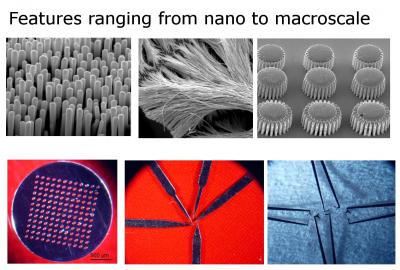| Various parts (nano-molds, nano-wires, gears, membrane, scalpels, and tweezers) fabricated by molding metallic glass over wide range of length scales -- from 13 nm to several millimeters.