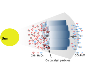 "You could have a small scale solar condenser and a concentrated source of CO2 in a closed loop cycle to make a portable fuel. It's a good way of storing energy for when the sun goes down," he suggests. Inexpensive solar concentrators could improve the process, as the photocatalytic CO2 conversion appears to scale with the intensity of sunlight.