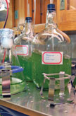 | Two strains of algae are being grown in the laboratory for testing the nanofarming technology. |