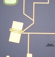 | Graphene sample with electrodes, fabricated using electron beam lithography |