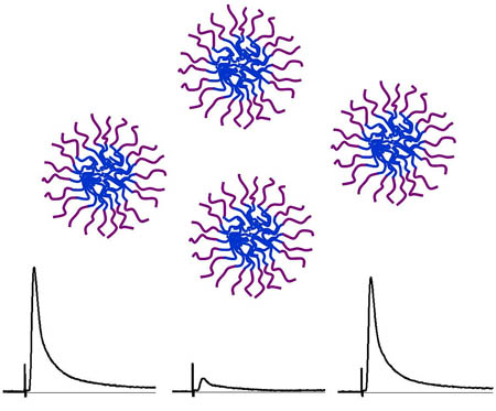 The synthetic "copolymer micelles" are drug-delivery spheres about 60 nanometers in diameter, or roughly 100 times smaller than the diameter of a red blood cell.