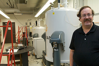 | Director of instrumentation Allan Kershaw in a new nuclear magnetic resonance lab in Stabler Hall. Photo/Dietmar Quistorf |