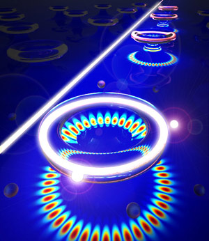 The glass resonator can serve as a particle detector because the faint outer edge of the light wave, called its "evanescent tail," penetrates the ring's surface, probing the surroundings. So when a particle attaches to the ring, it disturbs the light wave, changing the resonant frequency. This change can be used to measure the size of the particle.