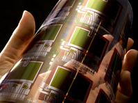 | Flexible, light-weight and robust: organic and printed electronics enable new applications. Sample of a printed solar cell (photo: Holst Centre, The Netherlands). |