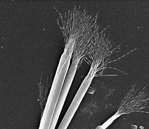 | After 72 hours of exposure to ambient light, strands of nanoparticles twisted and bunched together. Credit: Nicholas Kotov |