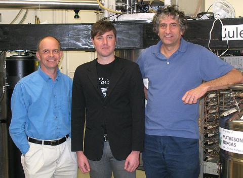 In a paper published in the March 17 issue of the advance online journal Nature, Aaron O'Connell, a doctoral student in physics, and John Martinis and Andrew Cleland, professors of physics, describe the first demonstration of a mechanical resonator that has been cooled to the quantum ground state, the lowest level of vibration allowed by quantum mechanics. With the mechanical resonator as close as possible to being perfectly still, they added a single quantum of energy to the resonator using a quantum bit (qubit) to produce the excitation. The resonator responded precisely as predicted by the theory of quantum mechanics.