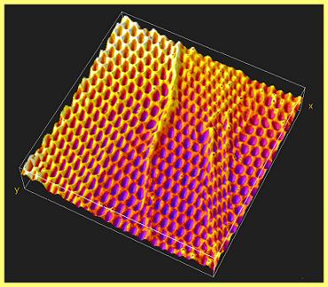 | This 3D surface rendering demonstrates the same ripples and folds at the nano level as would be found in macroscale fishing nets. Image courtesty of Adam Feinberg/Harvard University. |