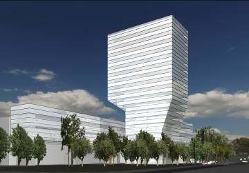 | 3D visualization of imec’s new office building. Construction will start Q4 2010 |