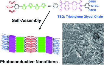 Title: Use of Side-Chain Incompatibility for Tailoring Long-Range p/n Heterojunctions: Photoconductive Nanofibers Formed by Self-Assembly of an Amphiphilic Donor-Acceptor Dyad Consisting of Oligothiophene and Perylenediimide
