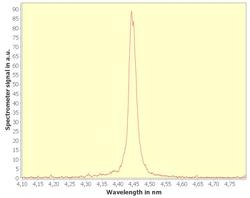 | The spectrum of the record laser pulse peaks at a wavelength of 4.45 nanometres. |