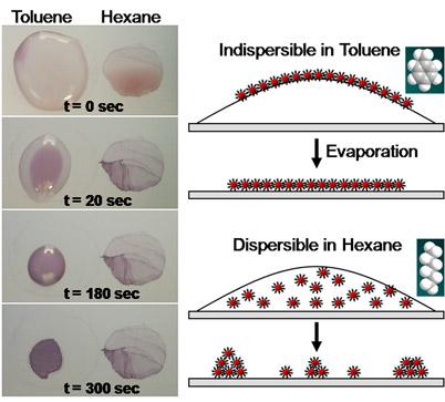 "The extension of this droplet 2-D self-assembly method to other kinds of nanoparticles, such as magnetic and semiconducting particles, is challenging but holds much potential," Eah said. "Monolayer films of magnetic nanoparticles, for instance, are important for magnetic data storage applications. Our new method may be able to help inform new and exciting applications."