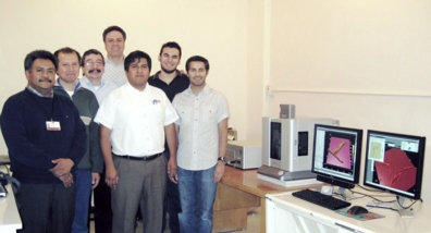 | Shown with the Cypher AFM system, left to right: Dr. Gilberto Mondragon-Galicia (ININ), Ing. Pavel Lopez (ININ), Ing. Carlos Segovia (Micra), Dr. Manuel Espinosa (Head of the Laboratory at the ININ), Ing. Miguel Urbano (Micra), Cristian Urrutia (Micra), and Amir Moshar (Asylum Research). |