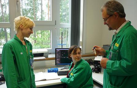 | Dr Holger Stephan of the Forschungszentrum Dresden-Rossendorf with two of his team, Anja Höhle & Madlen Matterna |