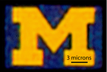 His team used this technique to make what they believes is the smallest color U-M logo. At about 12-by-9 microns, it's about 1/6 the width of a human hair.
