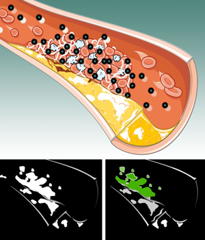 "If you're having a heart attack, the lining of your coronary artery has ruptured, and a clot is forming to repair it," Lanza says. "But that clot is starting to narrow the vessel so blood can't get by. Now we have a nanoparticle that will see that clot."