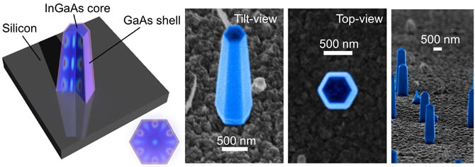 The UC Berkeley researchers overcame this limitation by finding a way to grow nanopillars made of indium gallium arsenide, a III-V material, onto a silicon surface at the relatively cool temperature of 400 degrees Celsius.