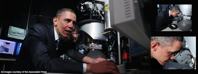 President Barack Obama finally got to see his atoms, courtesy of Intel and FEI's Titan transmission electron microscope.