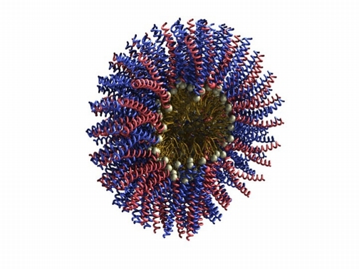 | This artistic rendering depicts some of the circulating nanoparticles studied by Matthew Tirrell’s research group at the University of California at Berkeley. The goal is to engineer such nanoparticles for diagnostic or therapeutic purposes. |