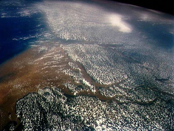 | The mouth of the Amazon River, where the world’s largest drainage basin flows into the Atlantic Ocean. A location such as this, where fresh and sea water mix, is a good spot for generating electricity with Yi Cui’s new battery. |