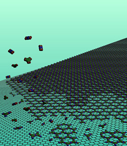 Dichtel, assistant professor of chemistry and chemical biology, and colleagues developed a simple process for growing thin (25-400 nanometers thick) films of COFs on a surface of graphene, a single-atom-thick sheet of carbon. They used X-ray diffraction at the Cornell High Energy Synchrotron Source (CHESS) to determine the materials' structure and orientation. The COFs grow as continuous films of well ordered, stacked layers on the graphene surfaces.
