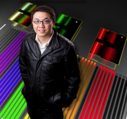 | New nanomaterials created by Qiaoquiang Gan allow for the trapping of different wavelengths of light, which could boost data storage and communications. |
