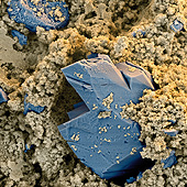 | Nanoscale crystal seeds also make concrete harden faster at normal outside temperatures (magnification 960:1 at 12 cm image width). |