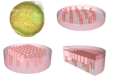 | Ying Zheng Top left, a tissue scaffold with pores visible. Clockwise, schematic diagrams showing cross-sections microstructured tissue templates. |