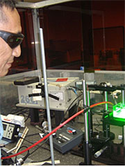 | Dr. Phuoc Tran’s laser ablation process is used to produce nanoparticles of gold that can be used in treating cancer and as targeted drug delivery vehicles. |