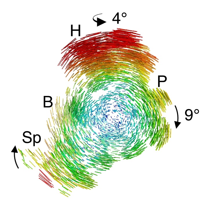 | This “action shot” reveals the motion of the small ribosomal subunit, depicted by difference vectors, during ratcheting. |