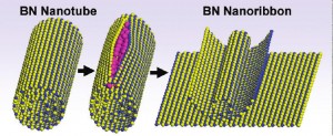 Home > Press > Splitsville for Boron Nitride Nanotubes: Berkeley Lab Researchers Find New Way to Mass Produce High Quality Boron Nitride Nanoribbons