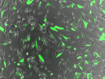 | Brain cancer cells produce a green fluorescent protein. DNA encoded to produce the protein was delivered to the cancer cells by new freeze-dried nanoparticles produced by Johns Hopkins biomedical engineers. Stephany Tzeng |