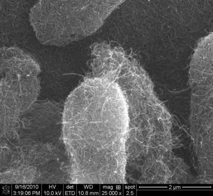 | Carbon nanotubes by scanning electron microscopy (Copyright: University of Vienna) |