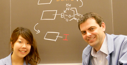 Graduate student Seiko Fujii and chemistry professor Martin Burke developed a novel class of chemical “building blocks” to more efficiently synthesize complex molecules, such as the antioxidant synechoxanthin. |