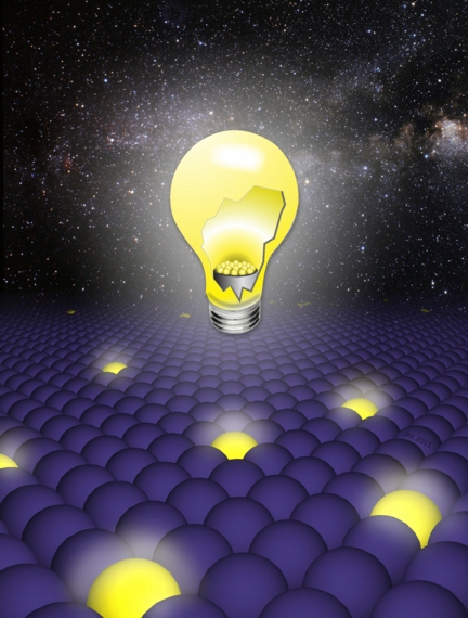 | "Artists conception of how solving the problem of quantum blinking may lead to applications in areas such as solid state lighting." Courtesy Los Alamos National Laboratory |